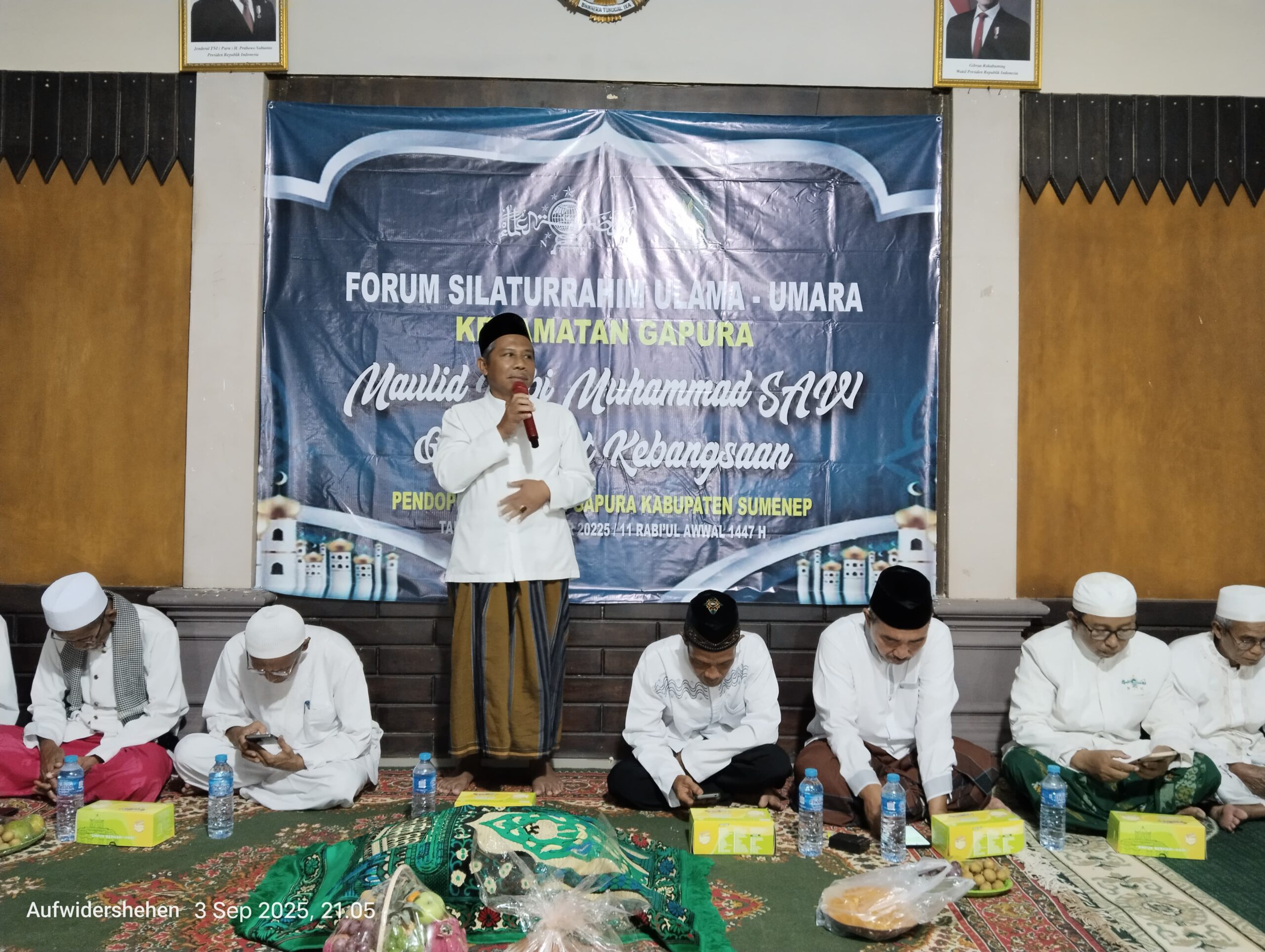 Gapura, Nura Online – Suasana religius dan penuh haru menyelimuti Pendopo Kecamatan Gapura pada Rabu malam (3/9/2025) saat ratusan warga, tokoh agama, dan pejabat pemerintah berkumpul dalam acara peringatan Maulid Nabi Muhammad SAW yang dirangkaikan dengan Munajat Kebangsaan.